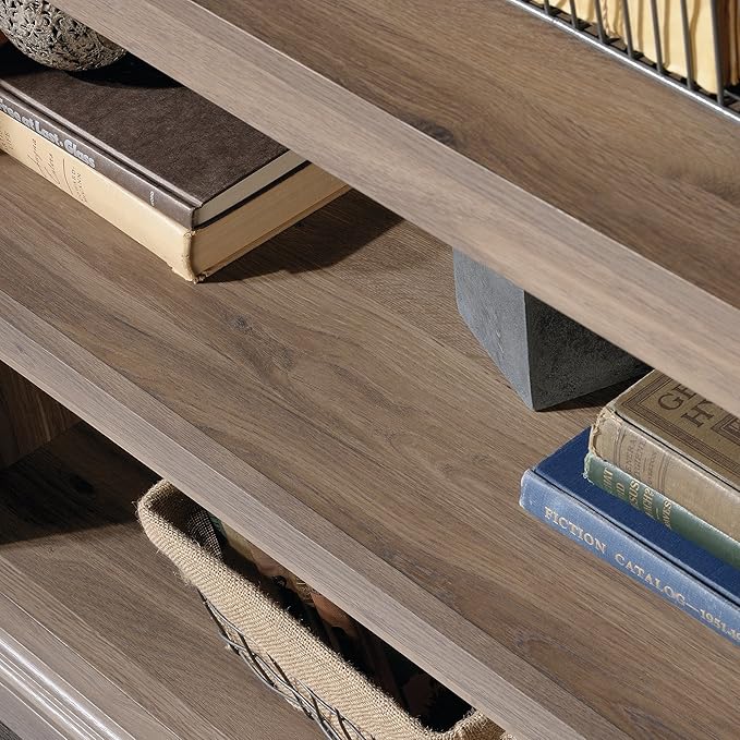 Sauder 5 Tier Book Shelf Wooden Bookcase Multipurpose Bookshelf for Home Office, Living Room, in Salt Oak finish