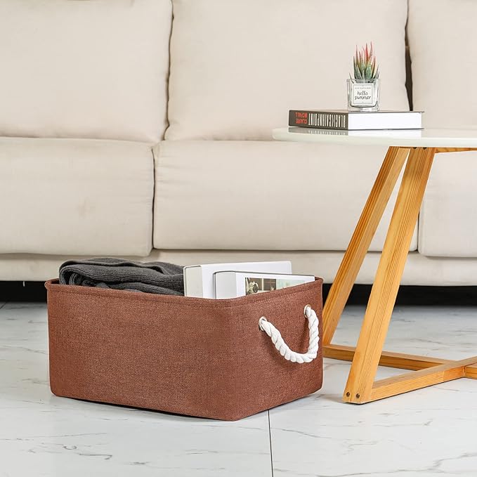 TheWarmHome Decorative Basket Rectangular Fabric Storage Bin Organizer Basket with Handles for Clothes Storage (Brown, Large-1Pack,15L*10.5W*8H)