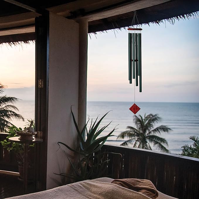 - Made With Long-Lasting Materials - This handcrafted, wind-activated wind chime resists most weather conditions. Made of bubinga finish wood, 6 satin green aluminum tubes and has a removable windcatcher for easy customization