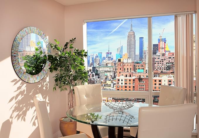Bohemian Rainbow Wall Mirror -Glass Mosaic Mirror Decorative Wall Mirror, Multi Color Spectrum Wall Mountable, 24" Multi-Color Round Framed Mirror