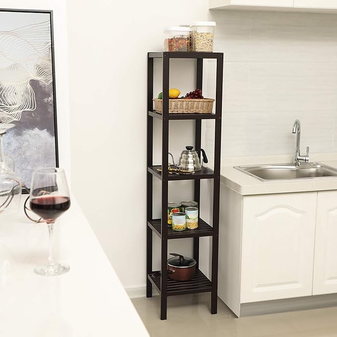 - Space-Saving: Measuring 13"D x 13"W x 57.5"H, this bamboo shelf occupies a small footprint yet offers ample vertical storage, making it the perfect choice for small spaces