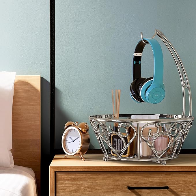Simple Houseware Fruit Basket Bowl with Banana Tree Hanger, Chrome Finish