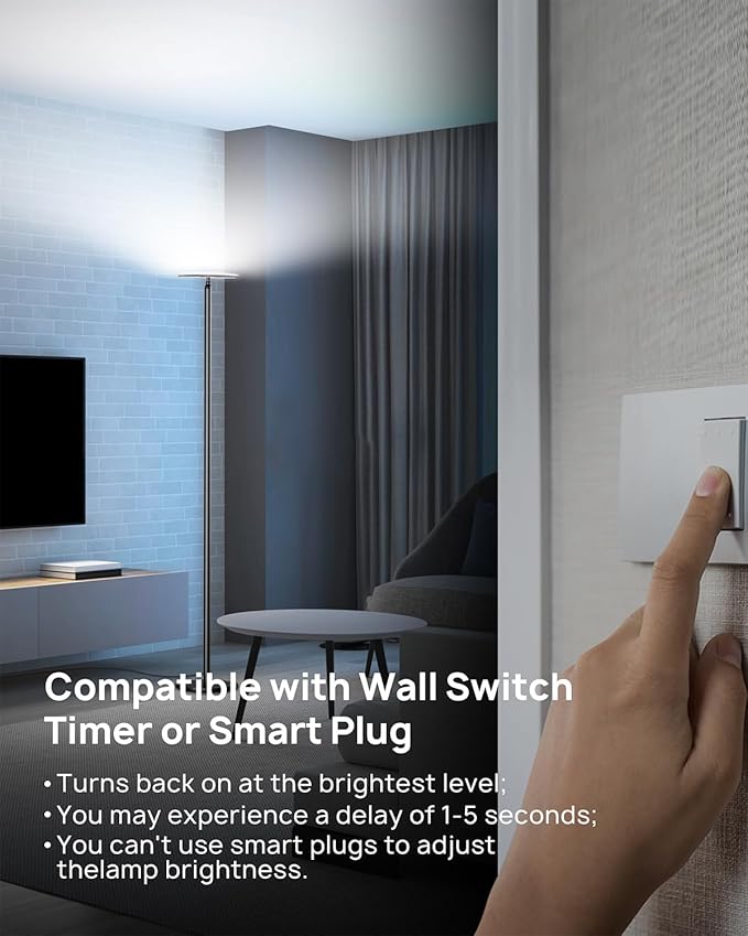 - Compatible with Wall Switch: Trond halo x is perhaps the first lamp which doesn’t use the mechanical switch, but can be turned on/off by using your wall switch or smart plug. However, you may experience a delay of 1-5 seconds before the light could be turned back on, due to different wiring design of your wall switches. The lamp will be turned back at its previous brightest level
