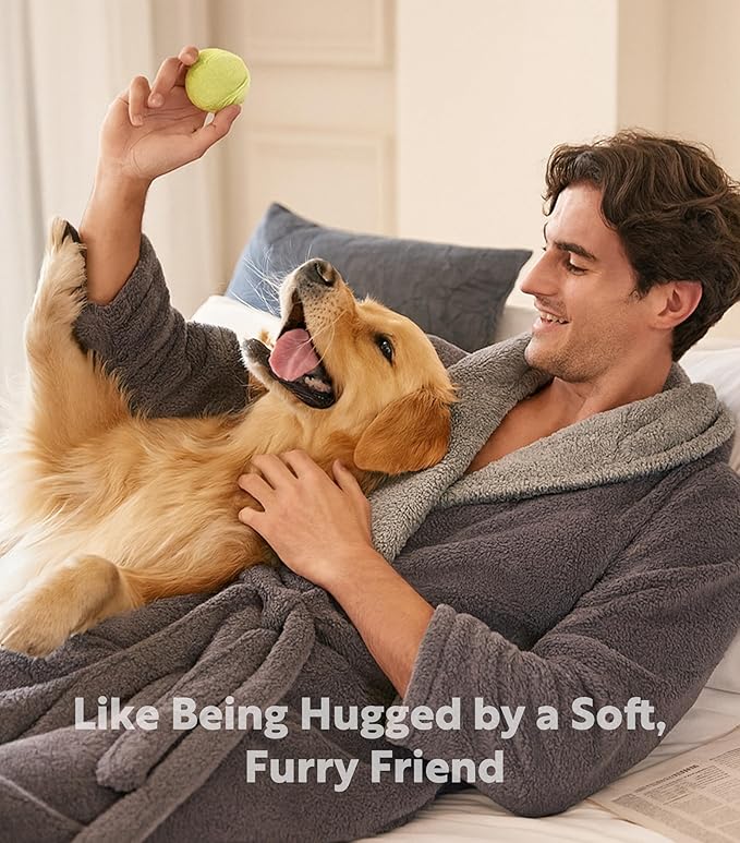 - WRAP YOURSELF WITH WARMTH & PLUSH: Mens robe made from shu velveteen fabric which is softer touch and fluffier than other fabric since it has longer yarn, just like touching your fluffy pet. Plush soft lounge robes featured with excellent resistance to the cold air to keep you warm, anti pilling and non-shedding.