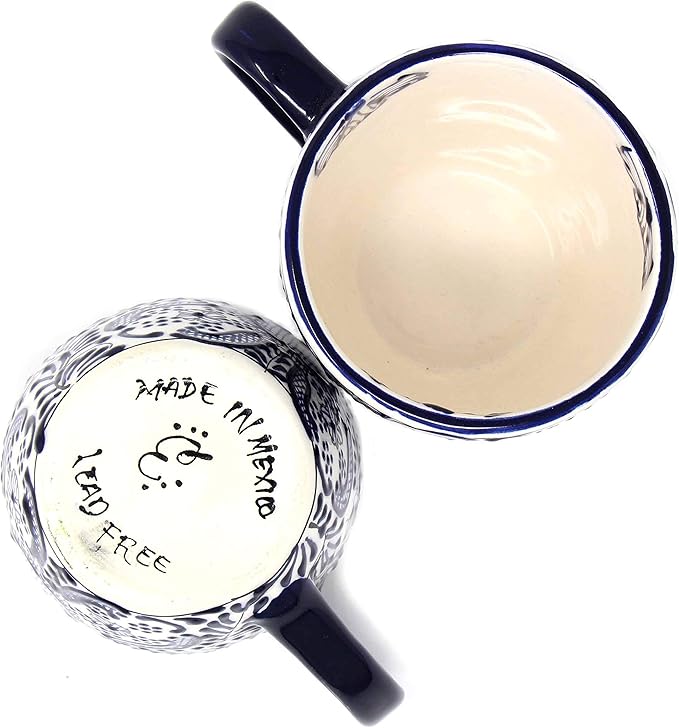 Encantada Handmade Hand-Painted Authentic Mexican Pottery Mugs (1-Pack, Cobalt Blue Flower)