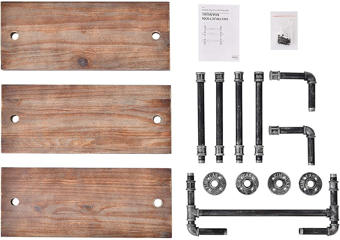 - Shelves come with step-by-step illustrated instructions and all fittings,including iron pipes,flanges,planks and screws. Size: Length 24 inch x Height 30/41 inch x Deep 10 inch.Wood: Length 24 inch x Depth 10 inch x Thickness 0.8 inch.