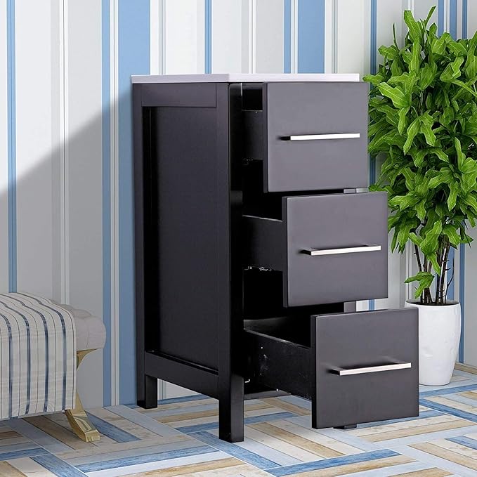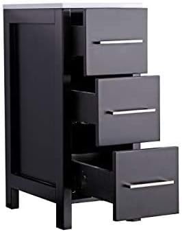 Vanity Art 12 Inch Bathroom Cabinet 3 Dove-Tailed Drawers with Engineered Marble Top Side Storage Organizer Freestanding Single Vanity VA3112-E