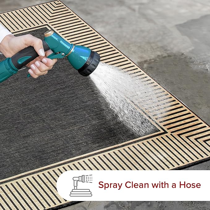 - Stylish & Versatile Design: This Bordered Indoor/Outdoor rug boasts a captivating aesthetic. Its Bordered pattern and unique prints bring a touch of flair to any room, ensuring lasting style in your living room, patio, or deck.