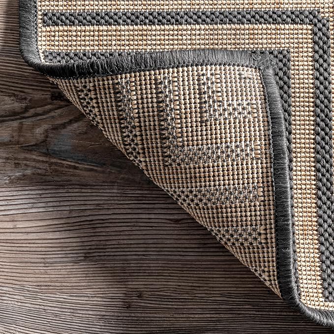 nuLOOM 8' x 10' Outdoor Area Rug, Casual Design With Striped Border, Stain Resistant, Highly Durable, For Patio, Balcony, Bedroom, Living Room, Dining Room, Bathroom, Dark Grey