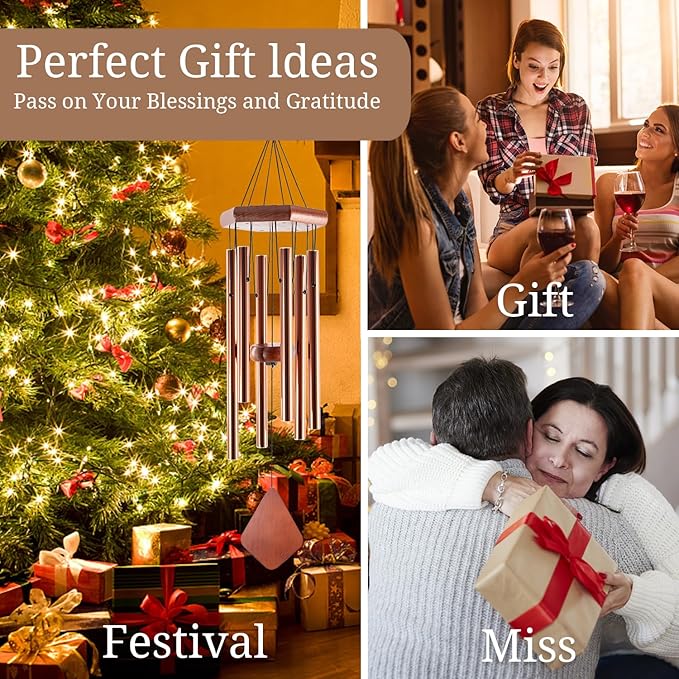 Small Wind Chimes for Outside, 28 Inches Wind Chimes Outdoor Tuned Soothing Melody, Sympathy Wind Chimes for Mom/Housewarming, Bronze Wind Chimes Outside Decoration.