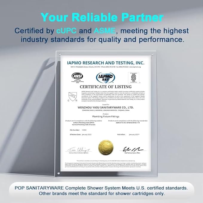 - INCLUDES: 8" Stainless Steel shower head, shower arm, shower mixer valve. California CEC list (1.8GPM 6.8L/MIN). CUPC certification, Products are in compliance with the following standard(s): ASME A112.18.1-2018/CSA B125.1-18