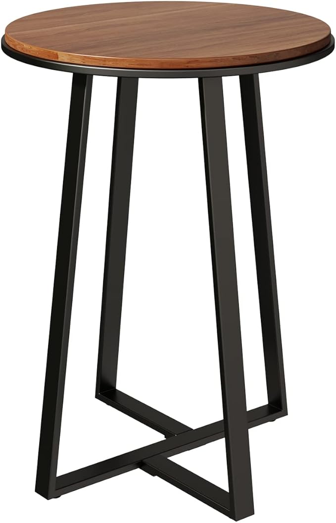 Round End Tables, Small Side Table Walnut Color MDF Top, Metal Frame Black, Tall End Table for Bed Room, Coffee Tea End Table for Living Room(Walnut+Black)