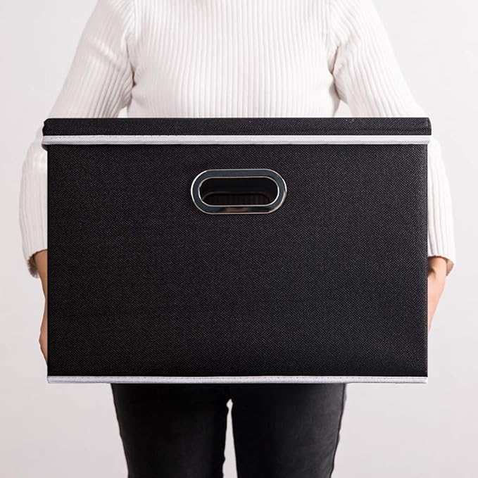 PRANDOM Large Foldable Storage Boxes with Lids [3-Pack] Fabric Collapsible Storage Bins Organizer Containers Baskets Cube with Cover for Home Bedroom Closet Office Nursery Black(17.7x11.8x11.8)