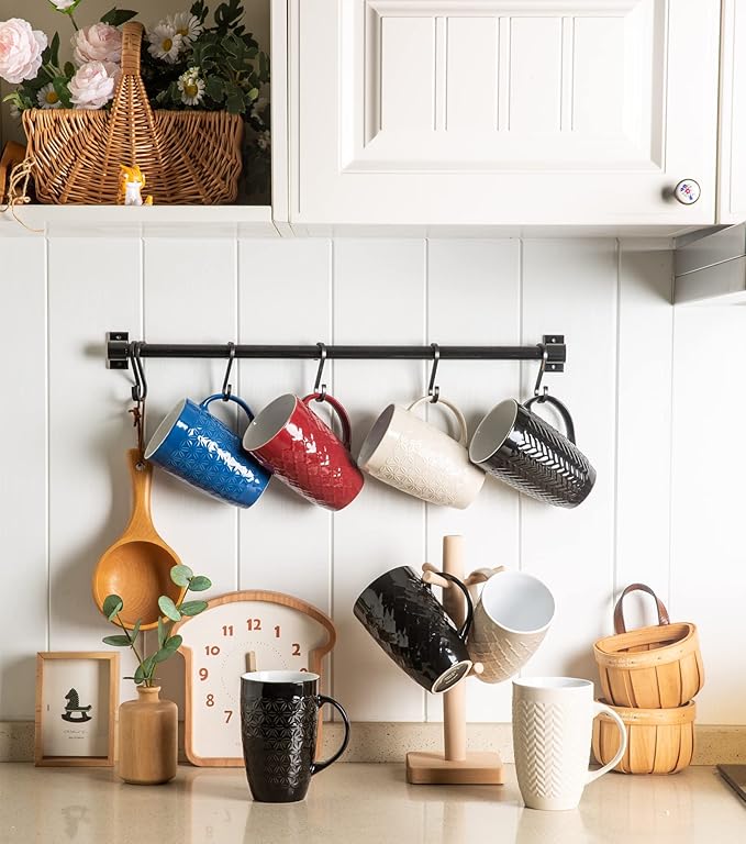 - LARGE OPEN HANDLE AND STYLISH DESIGN: These coffee mugs features a large open handle that provides a comfortable and secure grip. The handle remains cool even after microwaving, and the beverages stay warm. The smooth rim of the mug ensures a comfortable drinking experience. Designed by professional artists, these mugs with geometric relief patterns not only look fantastic on your table but also add a touch of style to your kitchen.