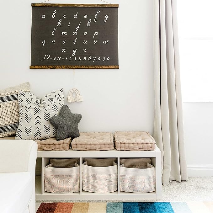 OrganiHaus Set of 3 Woven Storage Baskets for Organizing, Cotton Rope Organizer Bins for Shelves, Closet & Nursery, Dog Toy Basket, Decorative Bins for Toys, Towels & Books - 15x10x9, Rainbow Stitches