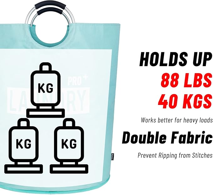 Caroeas Super Large 150L Laundry Hamper Pro, Waterproof Laundry Basket, Clothes Hamper Stands Up Well, Laundry Bag with Padded Handles, Collapsible Laundry Basket Easy Storage (Light Blue)