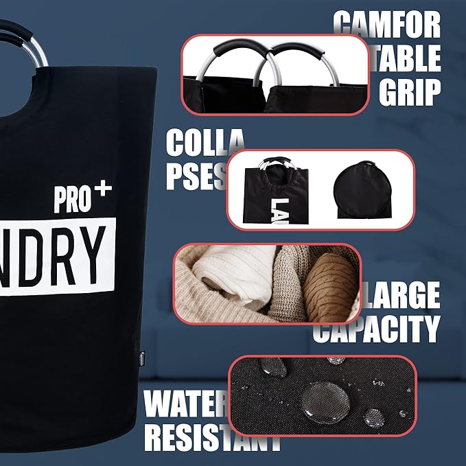 - 【Easy Storage More Comfort】Foldable laundry basket can be folded flatly in small portable size when not in using. Aluminum frame could hold heavy load and padded handles of large laundry hamper would keep hands comfortable.