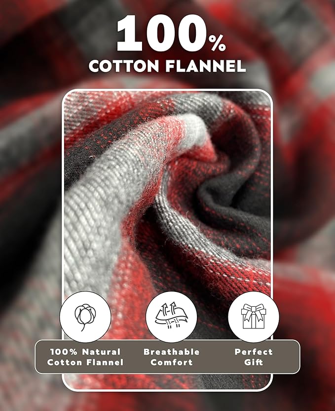 • Premium Naturally Soft & Breathable Cotton All Season Soft Brush Flannel Fabric Full Length Robe