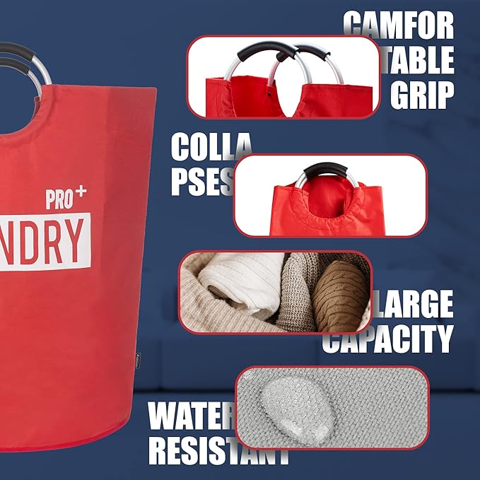 Caroeas Super Large 150L Laundry Basket Pro, Waterproof Laundry Hamper, Collapsible Laundry Basket Easy Storage, Clothes Hamper Stands Up Well, Laundry Bag with Padded Handles (Red)
