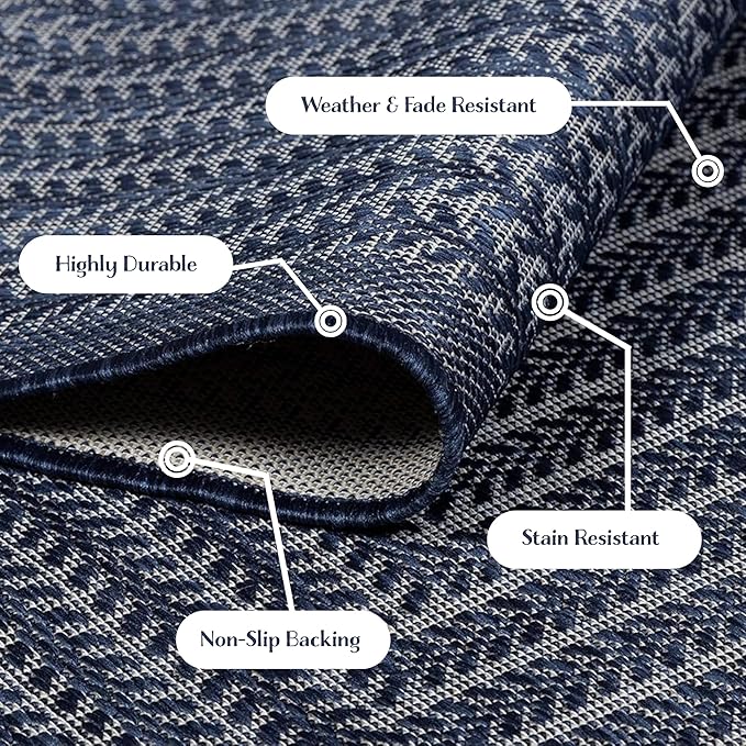 Adiva Rugs Outdoor Indoor Area Rug, Weather Resistant, Easy to Clean, Stain Resistant Floor Mat for Dining Room, Backyard, Deck, Patio (Navy Weiss, 6' x 9')