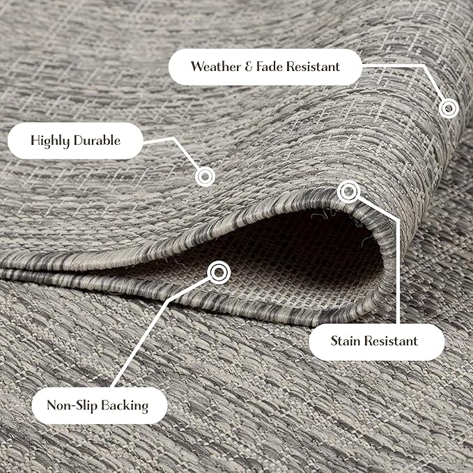 Adiva Rugs Outdoor Indoor Area Rug, Weather Resistant, Easy to Clean, Stain Resistant Floor Mat for Dining Room, Backyard, Deck, Patio (Silver Weiss, 6' x 9')