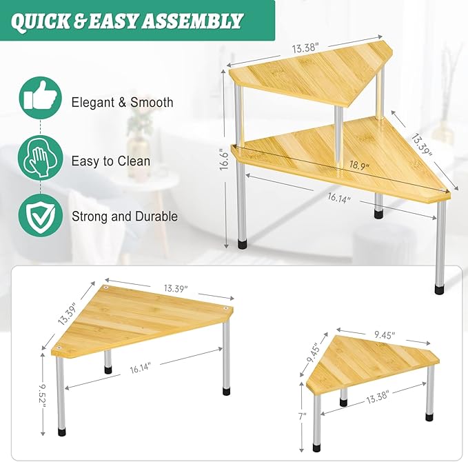 - EASY ASSEMBLY & PRACTICAL: Clear and easy-to-read instructions, just a few steps to install with hardware; 2 tier design shelf saves storage space and the top shelf can be directed as you want, on right and left corner