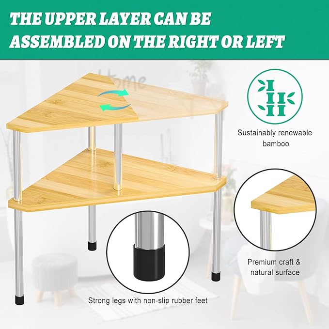 Weenson Bathroom Organizer Countertop Corner Shelf – 2 Tier Bathroom Organization Bamboo Spice Rack Kitchen Countertop Organizer Space Saving Storage Shelves Living Room Office Home Decor