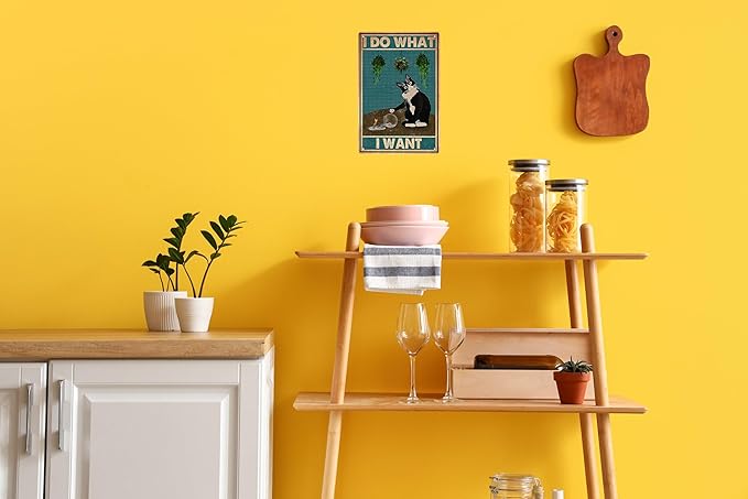 Black Cat Decor Funny Bathroom Wall Decor Vintage Sign 8x12 in -I Do What I Want- Cat Club Metal Tin Signs Bathroom Metal Tin Signs Retro Home Restroom Toilet Signs Wall Decor