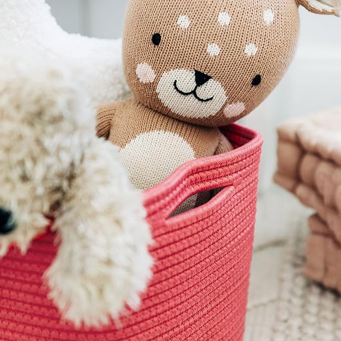 - Premium Cotton Rope Weave – These beautiful rainbow toy baskets are woven with high-quality, all-natural cotton to give them the right balance of softness and durability. This makes them great for bedrooms, nurseries, and laundry rooms as rainbow room decor.