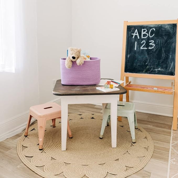 - Premium Cotton Rope Weave – These beautiful rainbow toy baskets are woven with high-quality, all-natural cotton to give them the right balance of softness and durability. This makes them great for bedrooms, nurseries, and laundry rooms as rainbow room decor.