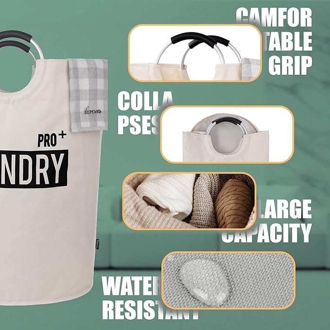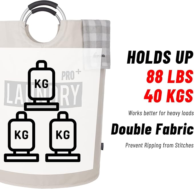 Caroeas Super Large 150L Laundry Basket Pro, Waterproof Laundry Hamper, Collapsible Laundry Basket Easy Storage, Clothes Hamper Stands Up Well, Laundry Bag with Padded Handles (Beige)