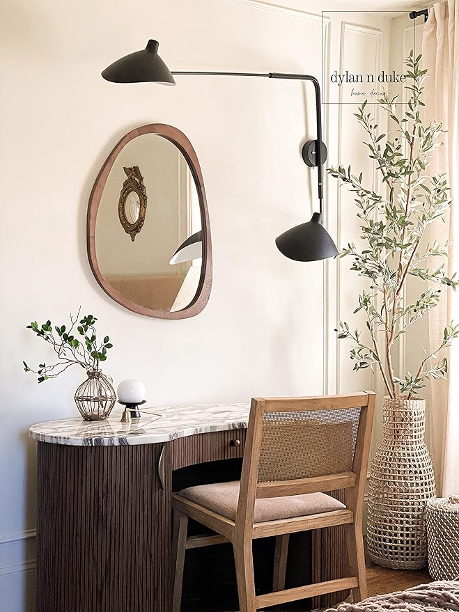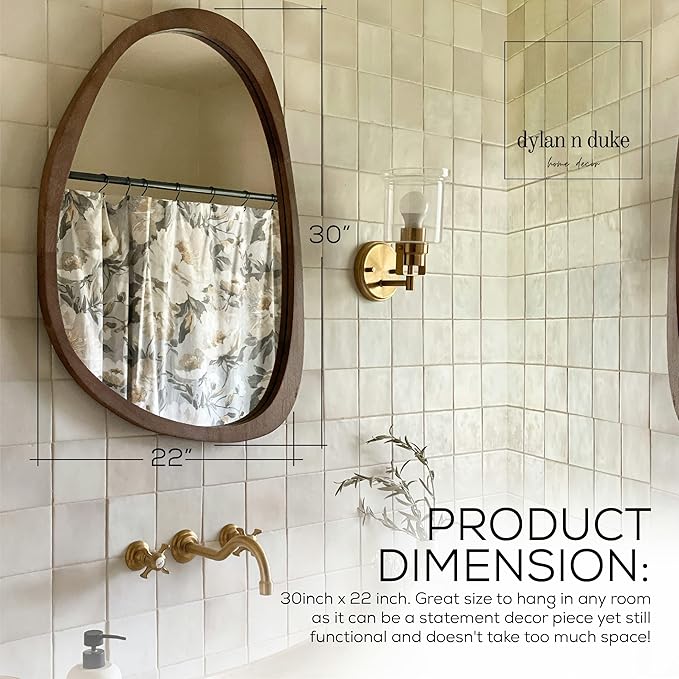 - [MID-CENTURY AESTHETIC DECOR] Celebrating the beauty of imperfection, this wood framed wall mirror is distinguished by its striking asymmetrical design. Crafted of beautiful wood, its fluid, undulating form feels at once organic and elegant, creating a one-of-a-kind focal point in your interior. Inspired by Italian mid-century design.