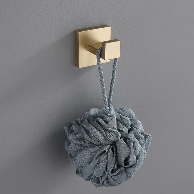 Towel Hooks SUS304 Stainless Steel Brushed Nickel Bath Coat Robe Clothes Square Hook Hanger Wall Hook Holder for Bathroom Kitchen Hotel Wall Mounted 4 Pack (Brushed Gold)
