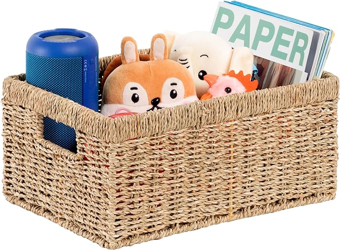 CENBOSS Wicker Baskets (Large, Seagrass, 1PC) Rattan Storage Baskets for Shelves, Woven Seagrass Holder
