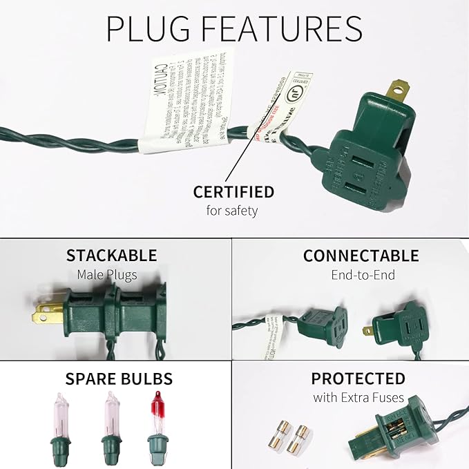 - Safty and Easily: High quality UL certified products ensure the safety of you and your family, Decorate with 100 clear incandescent mini lights with green wire will give a soft festive feel to your Christmas.