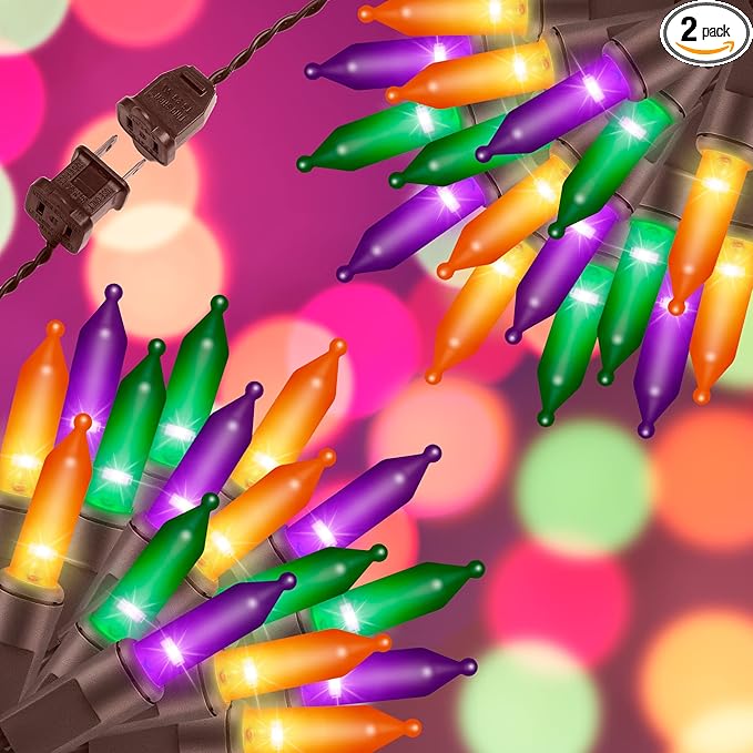 300LIGHTS(2*150L) ORANGE PURPLE and GREEN Extra-Bright With End Connectors Halloween Decorative Lights 19.44m UL Certified Mini String Light Set Waterproof for Halloween Home Garden Tree Party