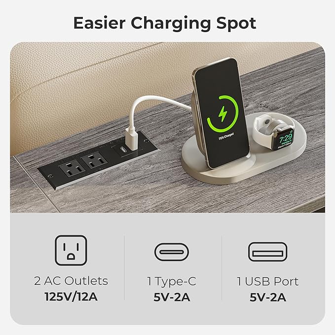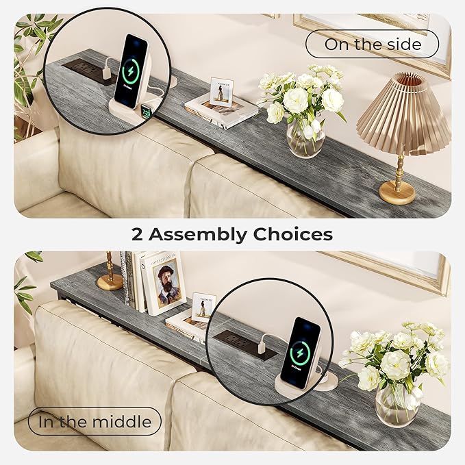 - 【Multiple Sofa back Charging Options】No more diving behind the sofa for an outlet! This sofa table features 2 AC outlets, 1 USB, and 1 USB-C port, perfect for charging your phone, lamp, speaker, or laptop right where you need it, whether behind your couch, in the hallway, or by the entry