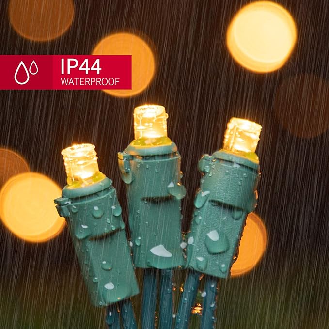 - High quality: Commercial grade 22 gauge wire with a pure copper core, wrapped in rubber that is infused with fire resistant materials, for longer runs and extended life. These 5mm feature a concave lens design that disperses uniform light in all directions for amazing color. You never have to worry about the string lights being buried in the bush.