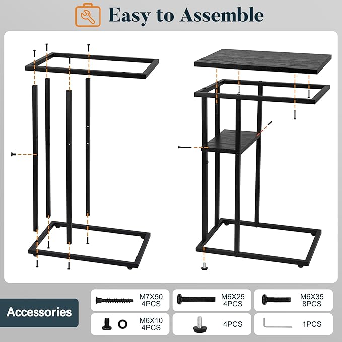 - Easy to Assemble: With the simple structure and accessories marked with numbers, you can assemble the narrow end table within 15 minutes. There is a detailed instruction and tools coming with the package. You can also assemble the couch side table refer to the installation video on the product page.
