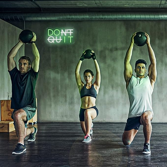 - Style & Material: The sign of Don't Quit (it also means to DO IT, don't give up)neon light is an exquisite artistic neon light decor sign. The LED neon light's combination of green and white is novel. The Neon Signs are made of Acrylic LED, Silicon Strips, and ABS Material, with No risk of glass breakage or leakage of hazardous materials