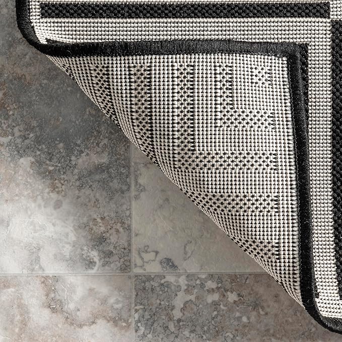 nuLOOM 5' x 8' Outdoor Area Rug, Casual Design With Striped Border, Stain Resistant, Highly Durable, For Patio, Balcony, Bedroom, Living Room, Dining Room, Bathroom, Black