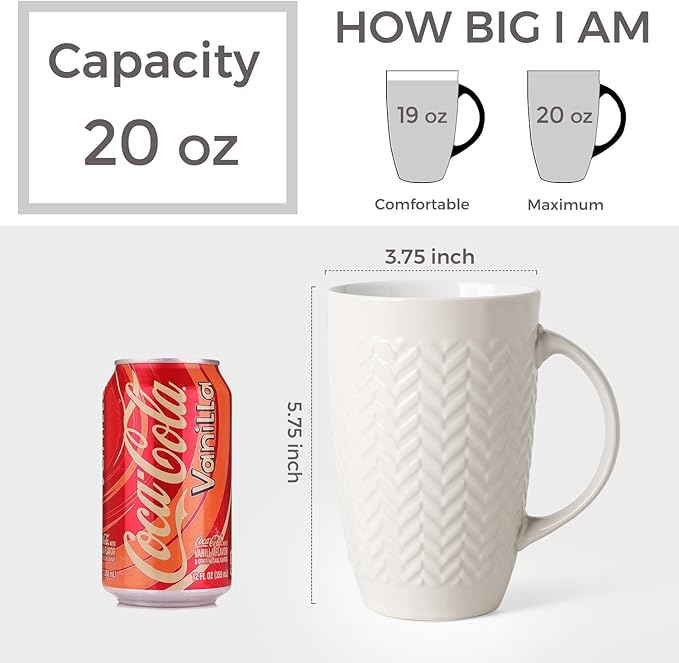 - 20OZ &VERSATILE: These large capacity coffee mug is perfect for daily use at home or in the office. With its big size, you can enjoy a normal cup of beverage without worrying about spills. This mug is not just for coffee - it's also great for tea, soup, beer, cocoa, and more