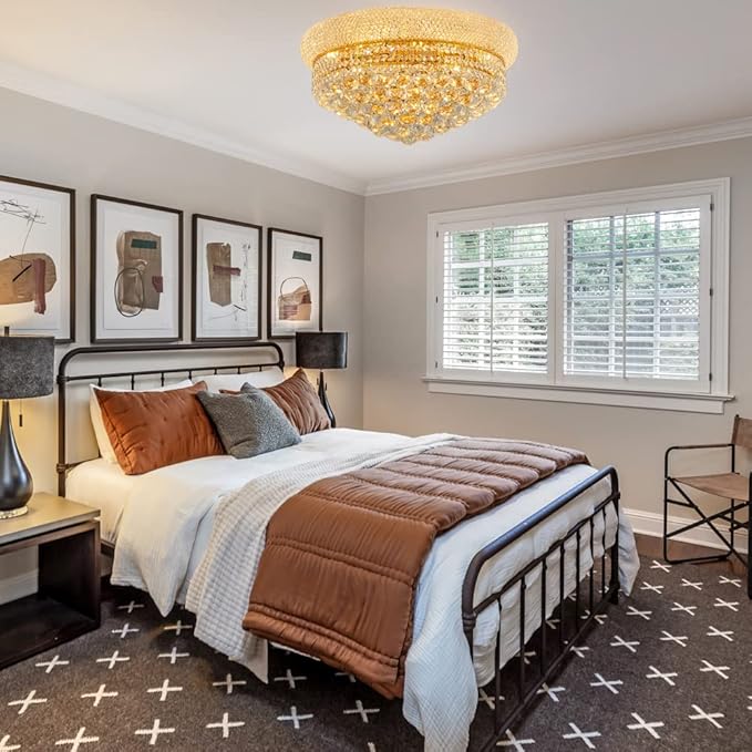 9-Light Crystal Flush Mount Chandelier Ceiling Light Fixture for Living Room Dining Room Bedroom Foyer Entryway Hallway Closet Bathroom (Gold D22)