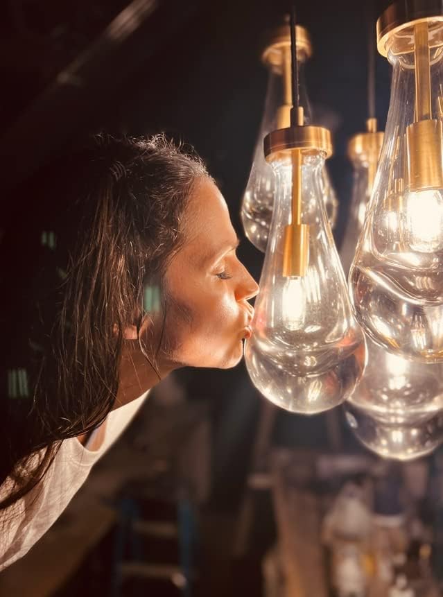 - 【Thickened Material】All the external metal parts of this pendant lights kitchen island are made of copper, which makes this kitchen light fixtures more textured. The hand-blown glass shade makes each island lights for kitchen a unique presence. The bottom of the raindrop glass shade is thicker, making the light softer.