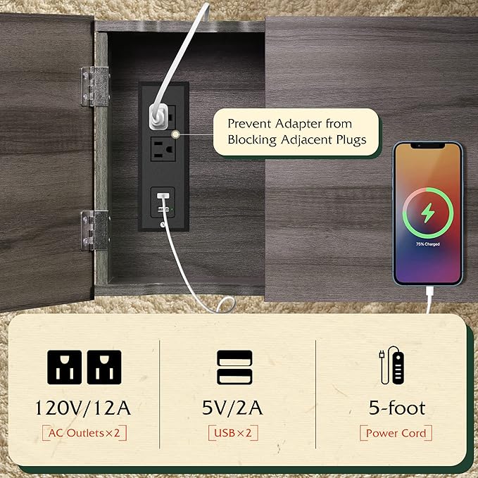 - This small end table is made with high-quality metal and engineered Wood. For meeting your basic needs,it is also designed with 2 USB ports and outlets.The extra fabric drawer offers more storage spaces.