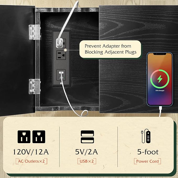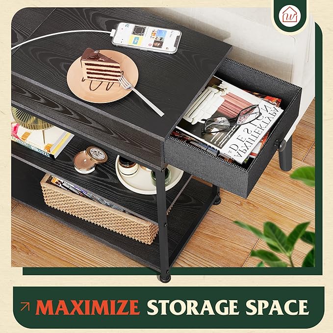 - 【Side Table with Outlets】With 2 Standard Outlets & 2 USB Ports, you can easily charge your phone, laptop, game console and lamp at the same time. Unique Outlets Design can prevent adapter from blocking adjacent plugs, keeping you fully charged at all times.
