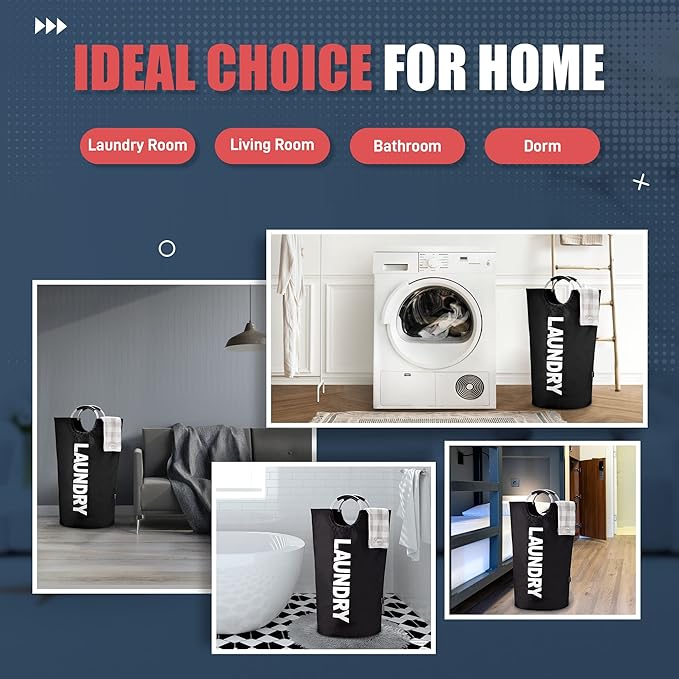 - 【Aluminum Soft Rubber Handle Design】This laundry hamper is equipped with qualified aluminum handle with soft sponge on it, providing a comfortable carrying experience for you to bring your clean or dirty clothes to your bedroom, bathroom, laundry room or any places at your home.