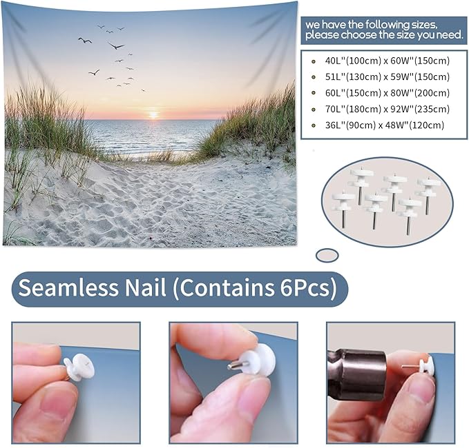 HVEST Ocean Beach Tapestry Wall Hanging, Sunset Seabird and Beach with Grass Wall Hanging Tapestry Natural Landscape Tapestry for Bedroom Living Room Dorm Decoration Wall Decor, 59x51 Inches