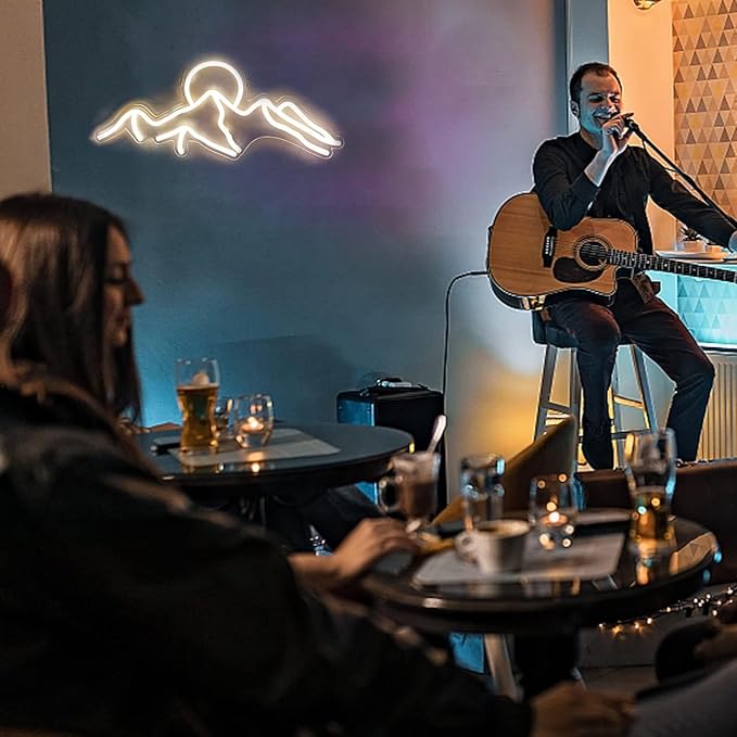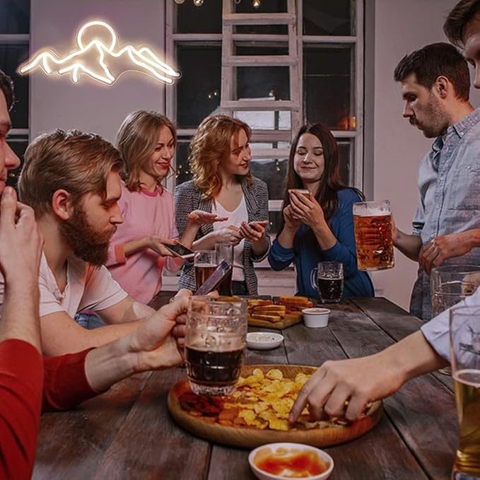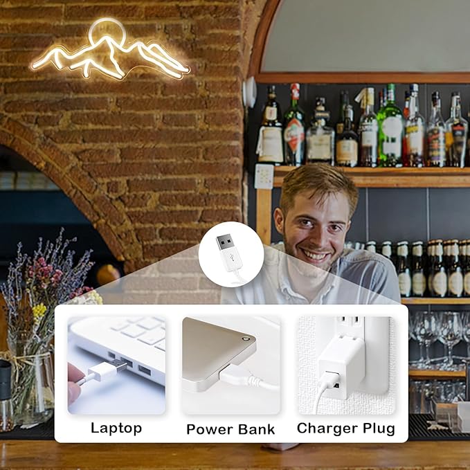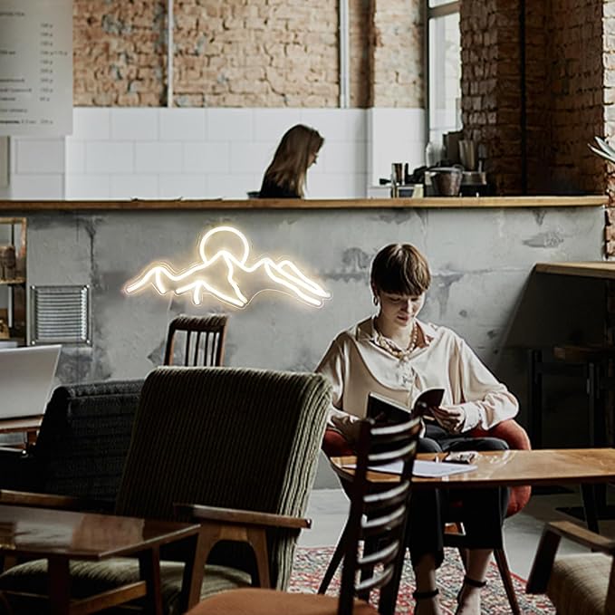 Ulalaza LED Decorative Lights USB Mountains Sunrise Sunset Led Neon Signs Home Decoration Wall Art Holiday Gift Brightness Adjustable 16.5''x11.8''