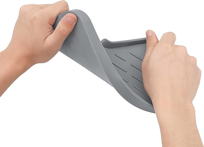 Silicone Bathroom Soap Dishes with Drain Spout-Bathroom and Kitchen Sink Organizer,Sponge Holder,Dish Soap Tray,Perfect for Dispenser,Scrubber,Bottle,Cup on Sink or Counter-Grey 9.6"×5.3"